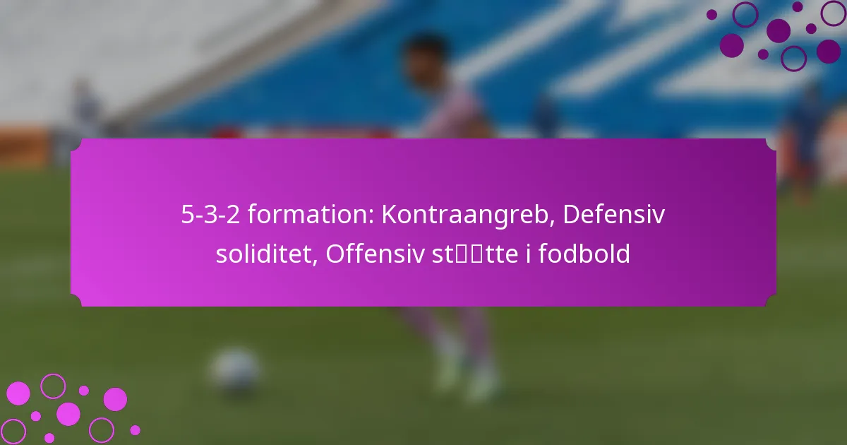 5-3-2 formation er en taktisk tilgang i fodbold, der har fem forsvarsspillere, tre midtbanespillere og to angribere, hvilket skaber en balance mellem defensiv styrke og offensiv kapacitet. Denne opsætning sikrer ikke kun en solid defensiv linje, men muliggør også hurtige kontraangreb, hvilket giver holdene mulighed for at udnytte de huller, som modstanderne efterlader. Ved at udnytte tre centrale forsvarsspillere kan holdene opretholde en kompakt struktur, mens de hurtigt skifter til angreb, når mulighederne opstår.