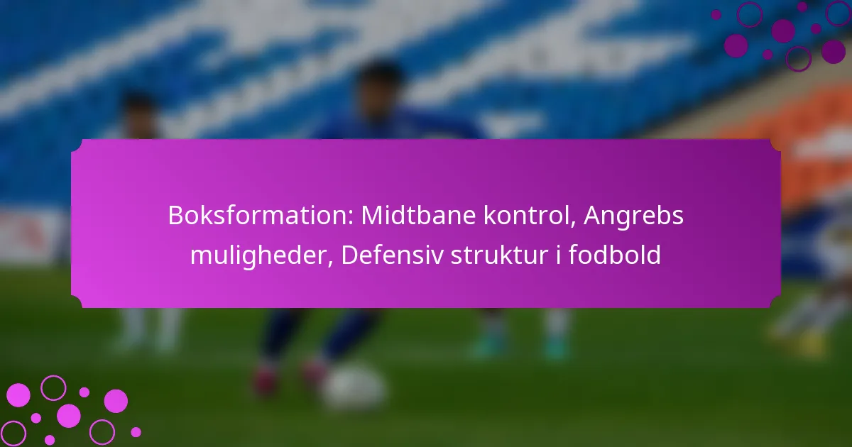 Boxformationen i fodbold er en taktisk opstilling, der har fire midtbanespillere arrangeret i en firkantet form, hvilket giver balance mellem forsvar og angreb. Denne formation forbedrer kontrol over midtbanen, hvilket gør det muligt for hold at bevare boldbesiddelse, mens de skaber angrebsoptioner og en solid defensiv struktur.